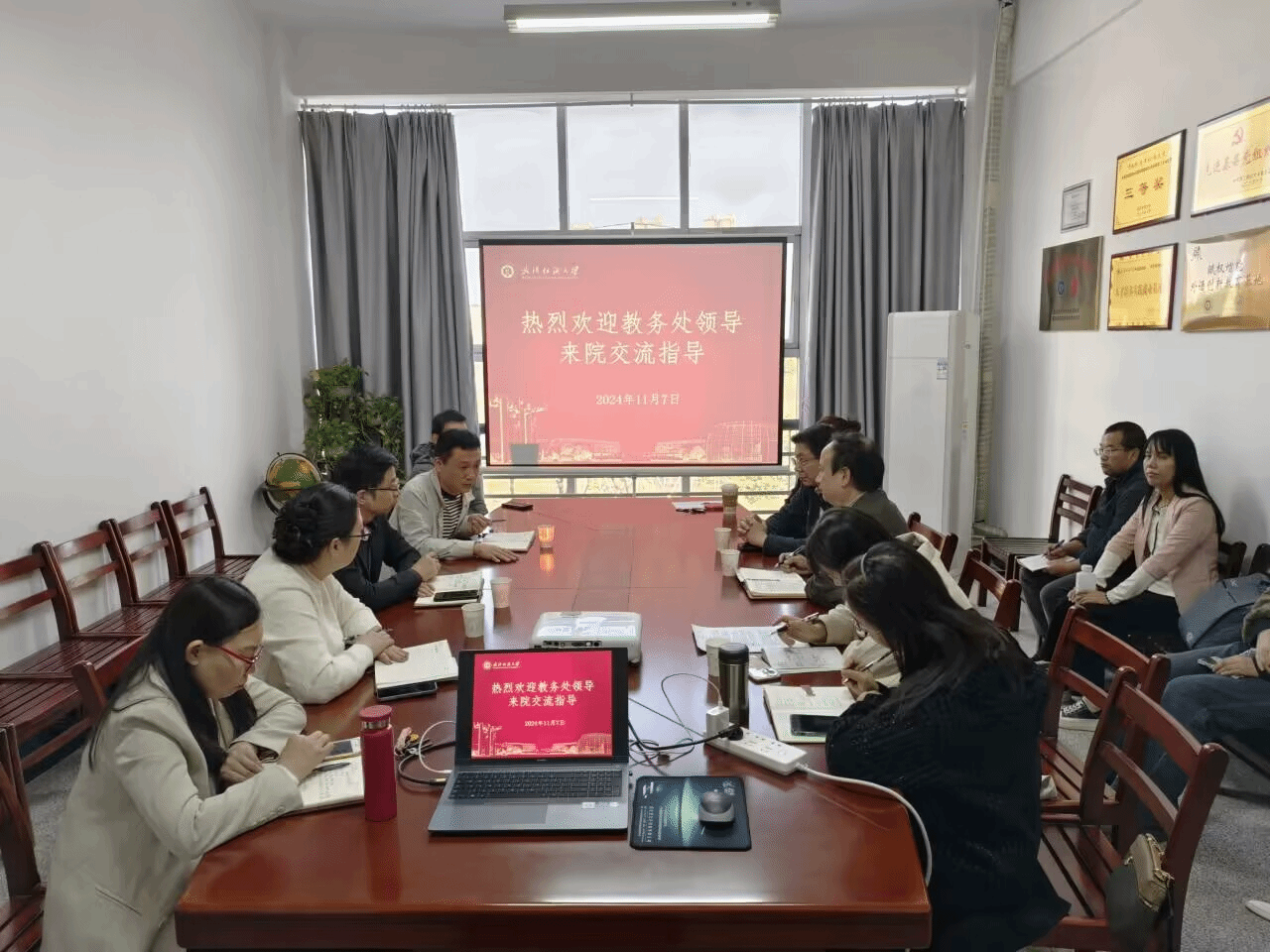 11月7日下午,教务处段刚、李明、张霞三位副处长来williamhill官网调研,了解校管课程大学英语的教学情况,包括首次开设的拔尖创新班教学状态、四六级通过率提升以及测试手段的创新等。williamhill官网党委书记胡中原,副院长罗绮伦、刘方荣以及教师代表参与会议,会议由教学副院长罗绮伦主持。