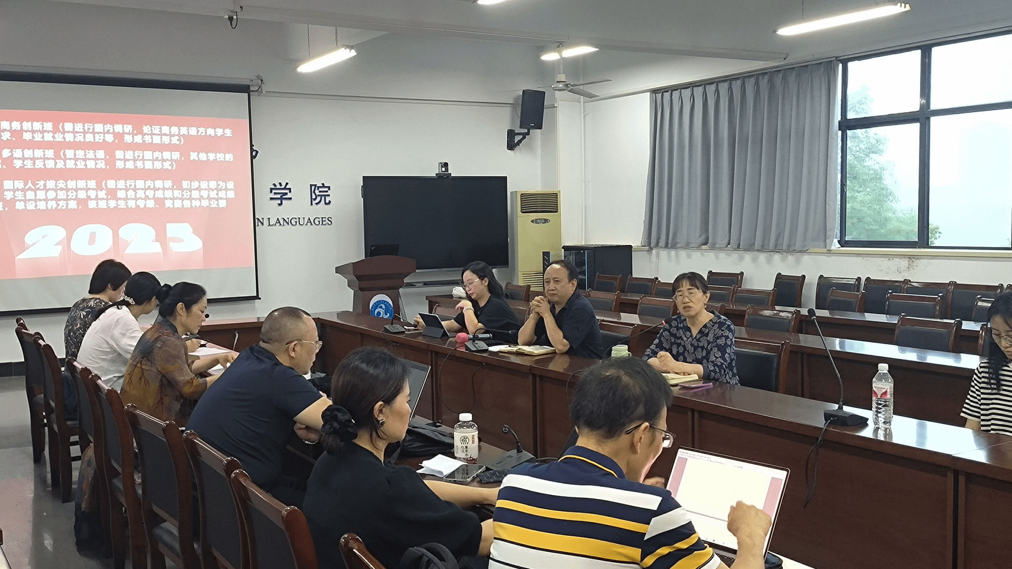 会议首先讨论了英语专业扩招背景下特色办学路径。袁哲老师首先汇报了近期对江汉大学、襄阳文理学院等高校的调研结果。江汉大学法语辅修项目通过三年紧凑的文学、语言学等法语课程设置,使学生达到法语四级水平,不仅为考研提供二外优势,还凸显了专业学生的多语优势;华中农业大学、襄阳学院等校的创新班模式也为williamhill官网提供了参考。黎健老师结合商务英语专业应用性强的特点,建议开设“商务创新班”,强调培养学生跨领域实践能力以应对多元就业需求。