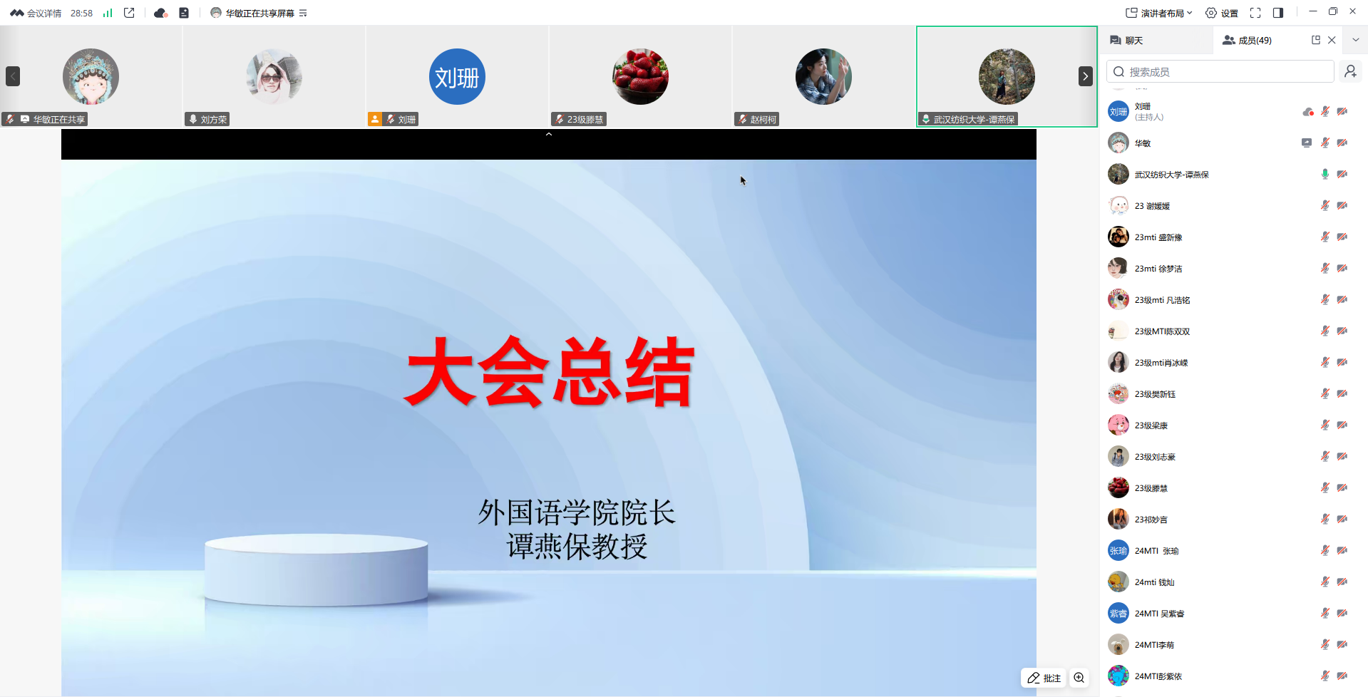 7月9日晚,williamhill官网2023级MTI实习总结暨毕业论文任务布置会在线上召开。23级研究生导师及23级、24级MTI研究生参会,会议由副院长刘方荣主持。