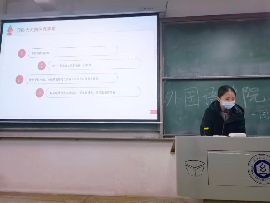 班会主题包含消防安全知识宣讲和疫情防控相关文件精神传达。周曦老师先为大家讲解了消防安全的基本常识,并播放消防知识科普视频。视频内容含义深刻,同学们对防火防灾有了更深一步的认识。周曦老师指出,根据相关宿舍管理规定,在宿舍禁止使用大功率电器、明火以及易燃易爆物品,如遇火灾应立即离开宿舍并拨打消防电话,千万不能为了财物跑回宿舍,无论任何情况都应将生命安全放在第一位。