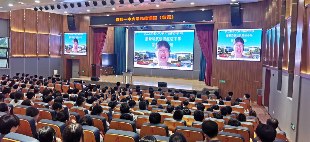 讲座伊始,纺大2022年招生宣传片大气霸屏,通过声与影的穿插,情与景的交融,为宜都一中师生生动展示了充满生机活力的美好纺大。