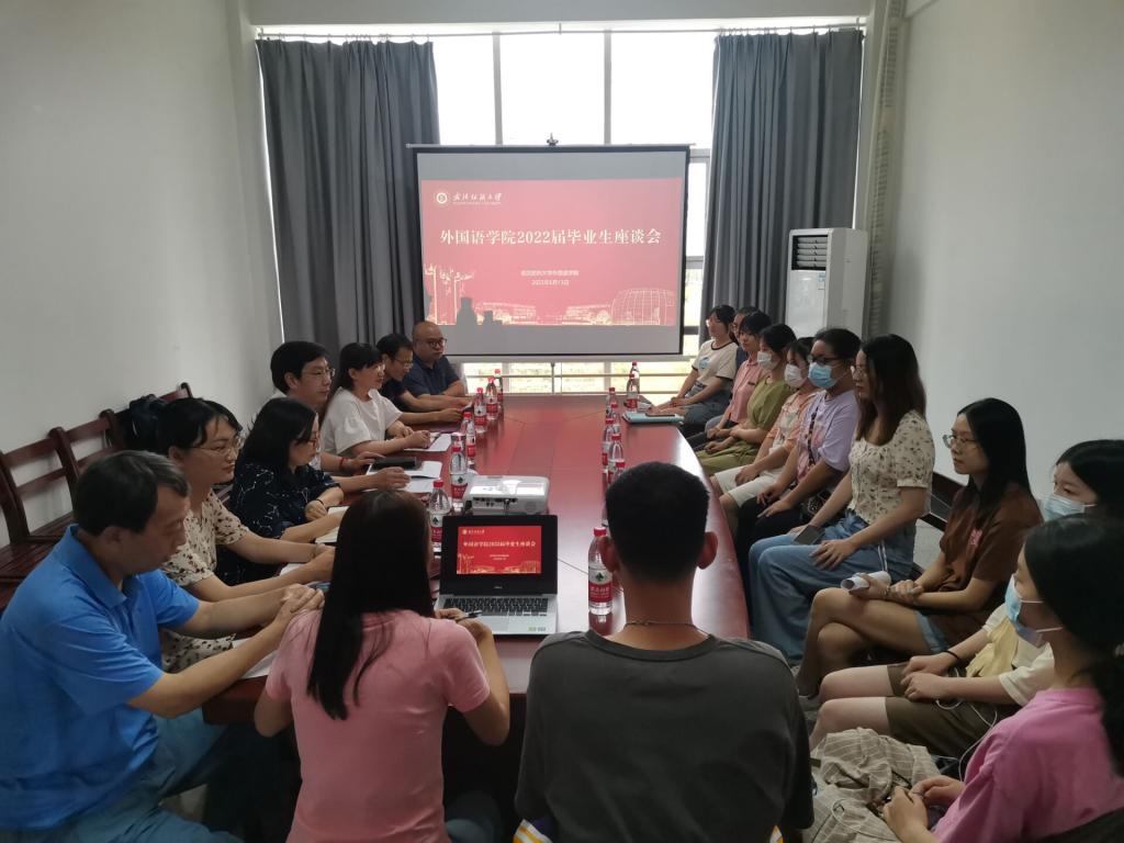 6月13日下午,williamhill官网在崇文楼313会议室召开2022届毕业生座谈会。学院党委书记胡中原,院长谭燕保,副院长刘方荣,学院党委副书记彭阳慈航、英语系主任唐娴、班主任代表曹火群、任课教师代表黎健以及部分毕业生代表参加,会议由毕业班辅导员甘新敏主持。