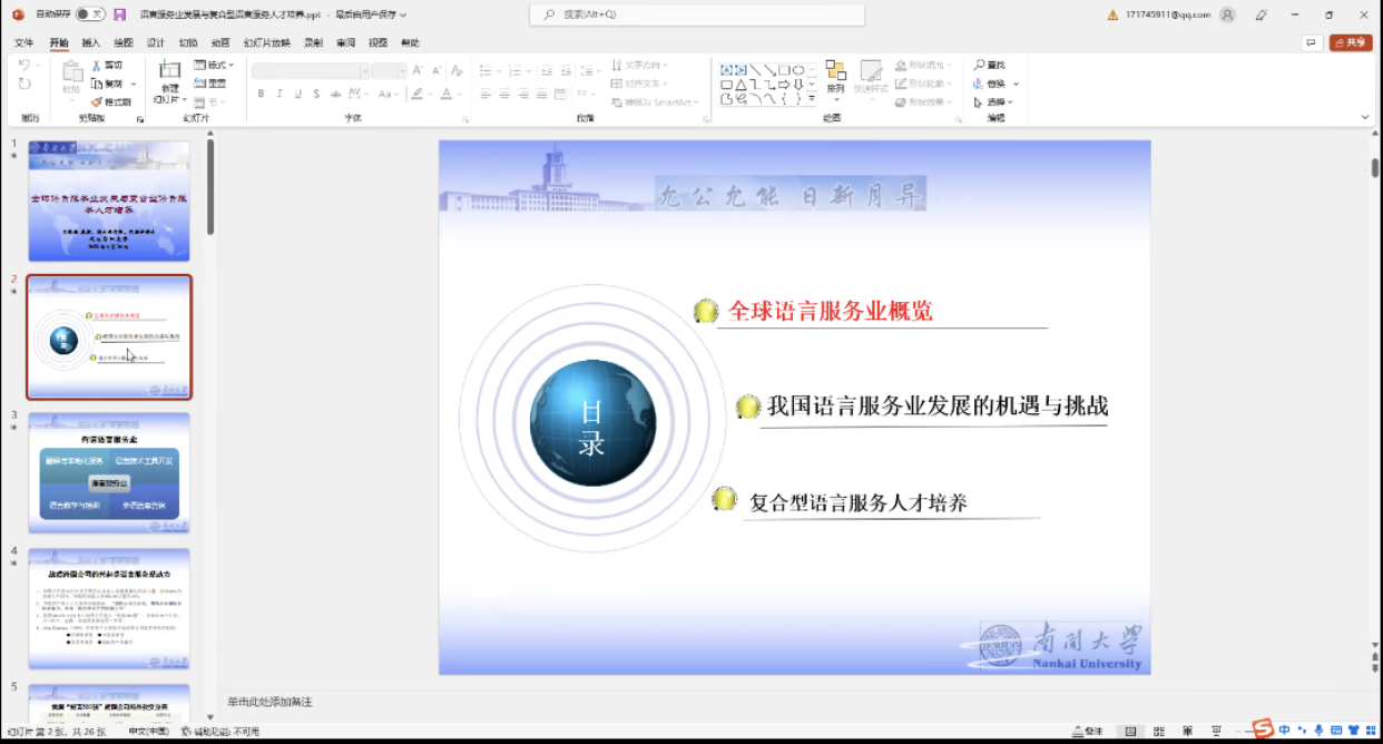 正值暑假,7月20日上午9点,南开大学williamhill官网博士生导师王传英教授应williamhill官网之邀,在云端作了题为“全球语言服务业发展与复合型语言服务人才培养”的学术讲座。讲座由院长谭燕保教授主持,williamhill官网全体教师及MTI中心研究生在线参加了此次讲座。
