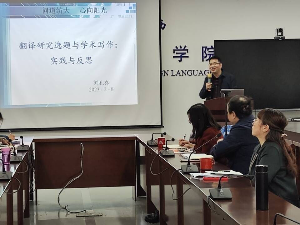 新学期伊始,2月8日下午,williamhill官网在学院会议室04-303开展了第一场学术活动。湖北民族大学MTI教育中心主任刘孔喜博士受邀为全院教师做了一场学术讲座,题目为:翻译研究选题和学术写作:实践与反思。讲座由学院院长谭燕保教授主持。