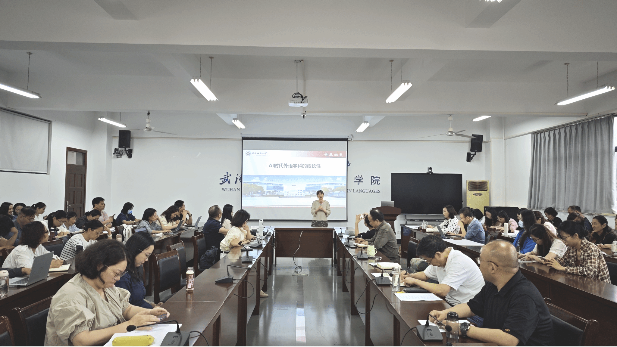 谭燕保以“AI时代外语学科的成长性”为题,开启了本次论坛。她的报告分为三个部分:AI时代的成长条件、“我”的成长意识及“我们”的成长方向。在谈到AI时代的成长条件时,谭燕保提出问题:“外语学科往何处去?”围绕该问题,她进行了分析,指出当今时代是需要外语的,高水平对外开放、国际话语、国际组织等方面对外语人才是有需求的,并提出外语老师利用AI时要在“大用”中寻求“实用”;她还引用了北京语言大学王立非教授的坚持外语学科“四个自信”不动摇:专业道路自信、专业理论自信、专业价值自信、专业人才自信,以此鼓励老师们要不断发展自己。在谈到“我”的成长意识时,谭燕保带领老师们回顾了学院近几年的发展及取得的成就,并引用4月12日学院学科专业及课程思政示范课程建设论证会上北京外国语大学孙有中教授的发言,指出AI 时代的williamhill官网williamhill官网要“做特”“做新”“聚焦”,展示williamhill官网的表现力和贡献度。在谈到“我们”的成长方向时,谭燕保提出两个问题让老师们思考:我们被需要吗?我们能做到吗?随后她和老师们一起讨论问题的答案,并鼓励老师们跟随学院发展的方向,体现自己的贡献度,在AI+学科时代培养兼具技术敏感性与人文批判力的复合型人才。
