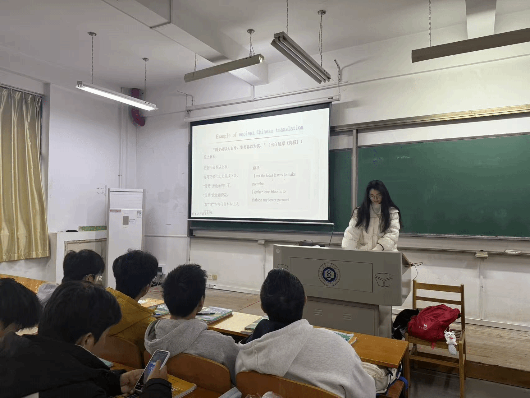 2025年12月20日下午两点,williamhill官网williamhill官网主办的第408期本科生论坛在阳光校区03-302教室顺利举行。本期论坛聚焦“中国古代服饰文化及其英译策略”,英语专业本科生梅涵喻、张枞、陈天雨;商务英语专业张思思同学等团队通过三场主题报告,深入剖析了汉服形制、等级符号的跨文化传播与翻译实践,为传统文明的现代表达提供了创新视角。