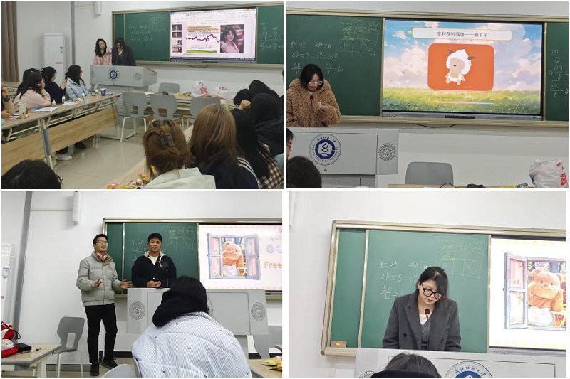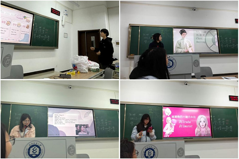 活动伊始,同学们通过“九宫格问答”破冰游戏迅速拉近距离。随后的自我介绍环节采用“石头剪刀布”决定讲述者,新颖的形式缓解了公开表达的紧张感。在核心的“Topic Speech”环节,六位同学依次登台,用英文分享了自己心中的偶像——既有陈都灵、杨紫、迪丽热巴、赵丽颖等演艺明星,也有动画角色懒羊羊。演讲者围绕偶像的吸引力、对自己的影响等角度展开,真情实感与英文表达相得益彰。自由交流环节中,同学们三五成群,围绕偶像与成长话题热烈讨论。活动最后,两位同学演唱了《See you again》《Young and beautiful》等英文歌曲,为整场活动画上圆满句号。