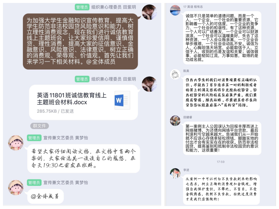 学院开展“感恩资助,诚信有我”作品征集活动,鼓励同学们用心书写对诚信的认识,并开展线上主题交流会,共同体会分享诚信、感恩、励志带来的正能量。