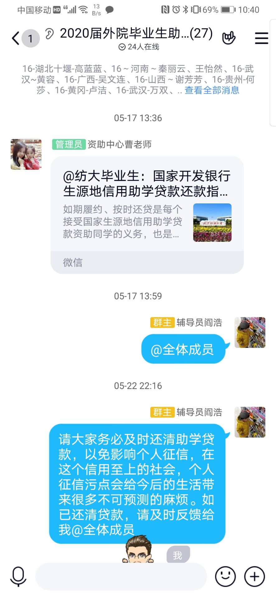 学院将学生资助管理中心印制的《还款指南》和《致贷款毕业生的一封信》,发放到每一位贷款毕业生手中,向学生倡议:人生之路,从诚信起步,要像珍惜自己的生命一样维护个人的信用记录。辅导员与每一位贷款毕业生开展一次“诚信谈话”,结合事例给学生讲述维护个人信用记录与个人利益的关系,进一步增强毕业生的征信意识和诚信品质。贷款毕业生们表示,将来一定恪守信用,按时还贷,向社会展示纺大学子的良好品质。